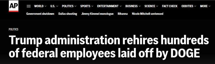 △美联社:特朗普政府已雇用了以前被“政府效率部”撤职的方式 - 联邦雇员。最近,美国媒体透露了