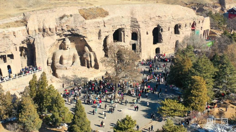 尽管已是初冬,天气寒冷,但前往山西大同云冈石窟景区的游客依然络绎不绝。此地位于雁门关外,五洲山南麓。